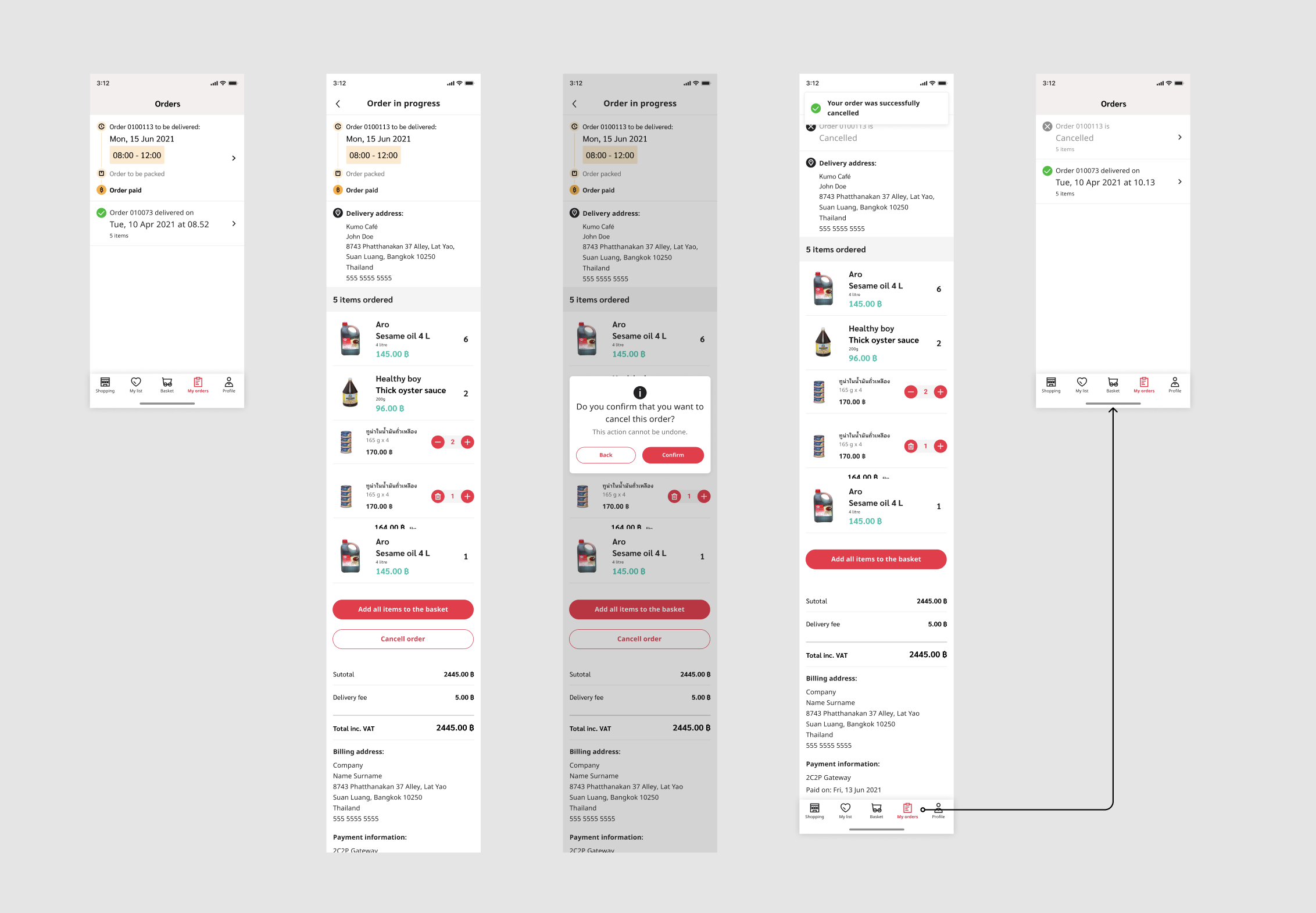 Below the cancellation flow of a user cancelling the order and then checking the order status.