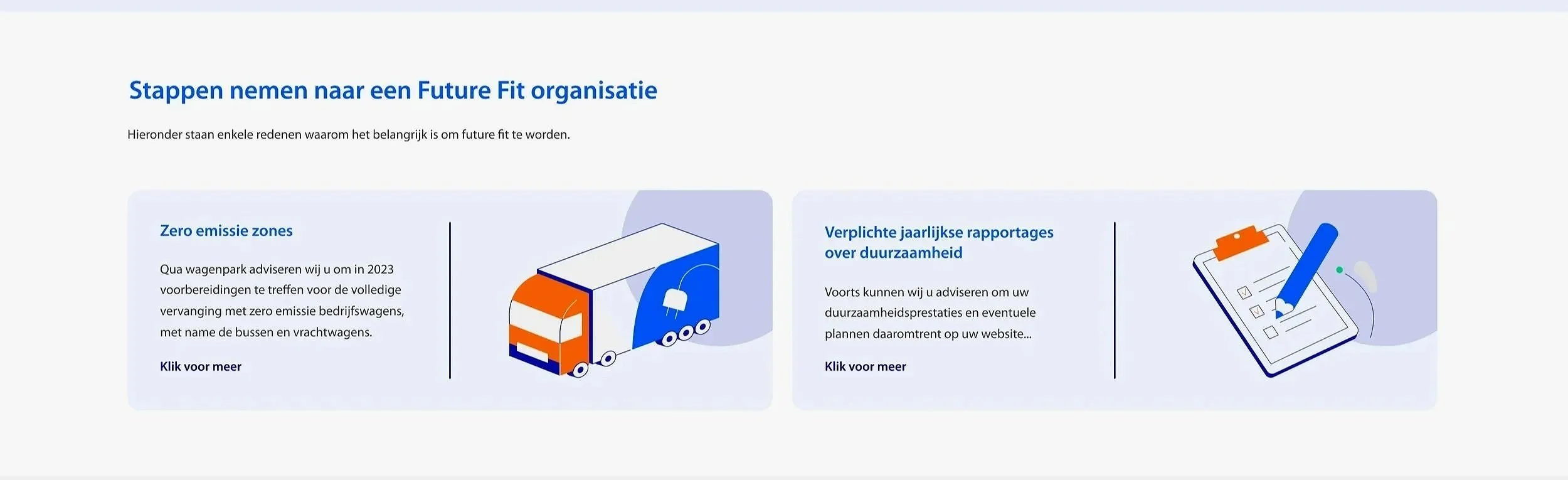 I designed two distinct proposals for the results page, incorporating all the insights gathered during the workshop. Both designs were crafted with the specific needs of the target audience in mind. To inform these proposals, we created proto-personas based on data collected from conversations that Rabobank sustainability consultants had with SMEs, ensuring the solutions addressed real user behaviors, goals, and pain points.